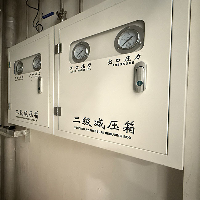 医用中心供氧系统主要由氧气源设备、减压装置、管道网络、终端接口及监控报警系统等部分组成。氧气源通常包括液氧储罐、医用制氧机或高压氧气瓶组。大型综合医院多采用液氧储罐,因其储氧量大、运行成本低;中小型医疗机构则常选用制氧机,可实现就地制氧,减少运输依赖;氧气瓶组则多作为备用气源。氧气经减压装置调节至0.4~0.5 MPa的安全使用压力后,通过医用级不锈钢或铜质管道输送至各用氧点。每个病床、手术台均设有标准化氧气终端和流量计,医护人员只需插接湿化瓶或呼吸设备即可快速供氧。同时,系统配备压力传感器、声光报警器及中央监控平台,可实时监测氧气压力、浓度及设备运行状态,确保异常情况及时预警处理。