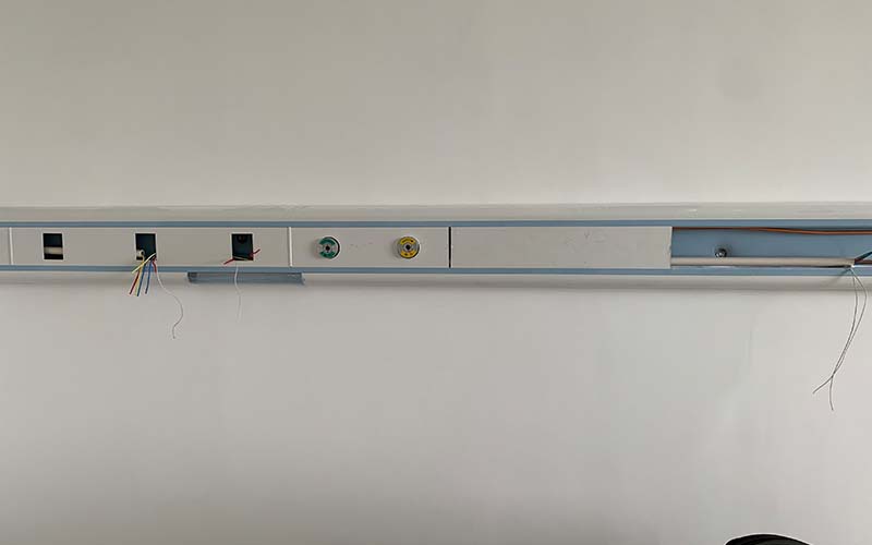 设备带的定位应综合考虑病房或手术室的实际布局。条带型设备带中心线距地面宜为1350毫米至1450毫米,终端组件安装高度距地面应在900毫米至1600毫米范围内。终端组件中心与侧墙或隔断的距离不应小于200毫米,横排布置的相邻终端中心距宜按80毫米至150毫米等距离布置。设备带本体多采用铝合金型材,表面经阳极氧化或喷塑处理,具备良好的防火、防潮、耐腐蚀及易清洁性能,符合医院感染控制要求。设备带内部应严格分区设计,气体管道与强电线路分槽敷设,强弱电隔离,防止电磁干扰与电气故障引发气体安全事故。